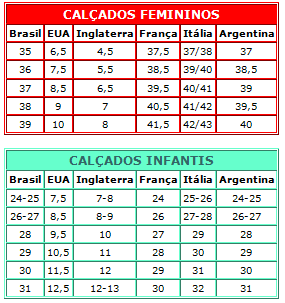 Encontrei isso num blog/site e achei bem interessante, dá para pelo menos termos uma idéia e não ficar experimentando até encontrar o tamanho correto. Lembrando que o Canadá adota quase todas as medidas dos EUA.